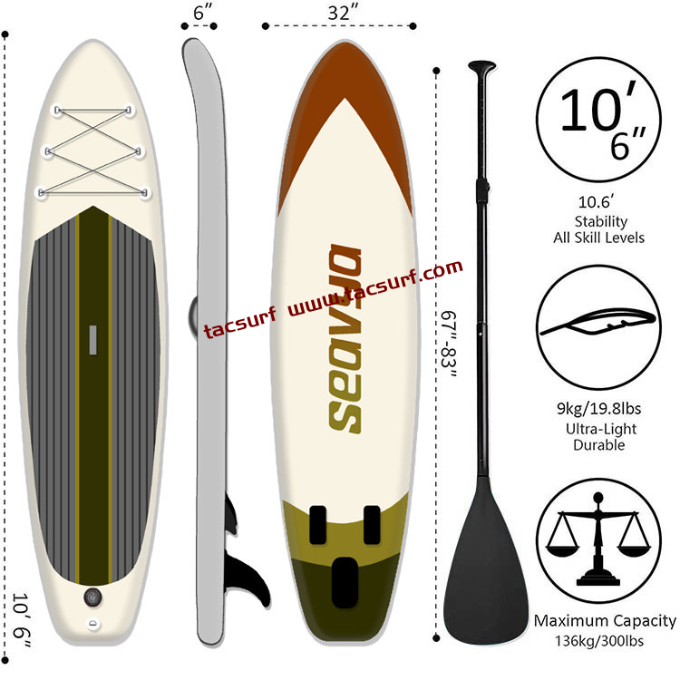 | Material | High Pressure Drop Stitch, Military Grade Pvc | Size | 10’6”x32”x6” |